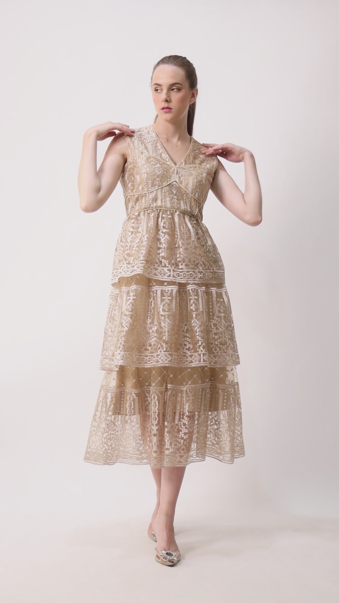 Material : Embridered Tulle with jersey inner