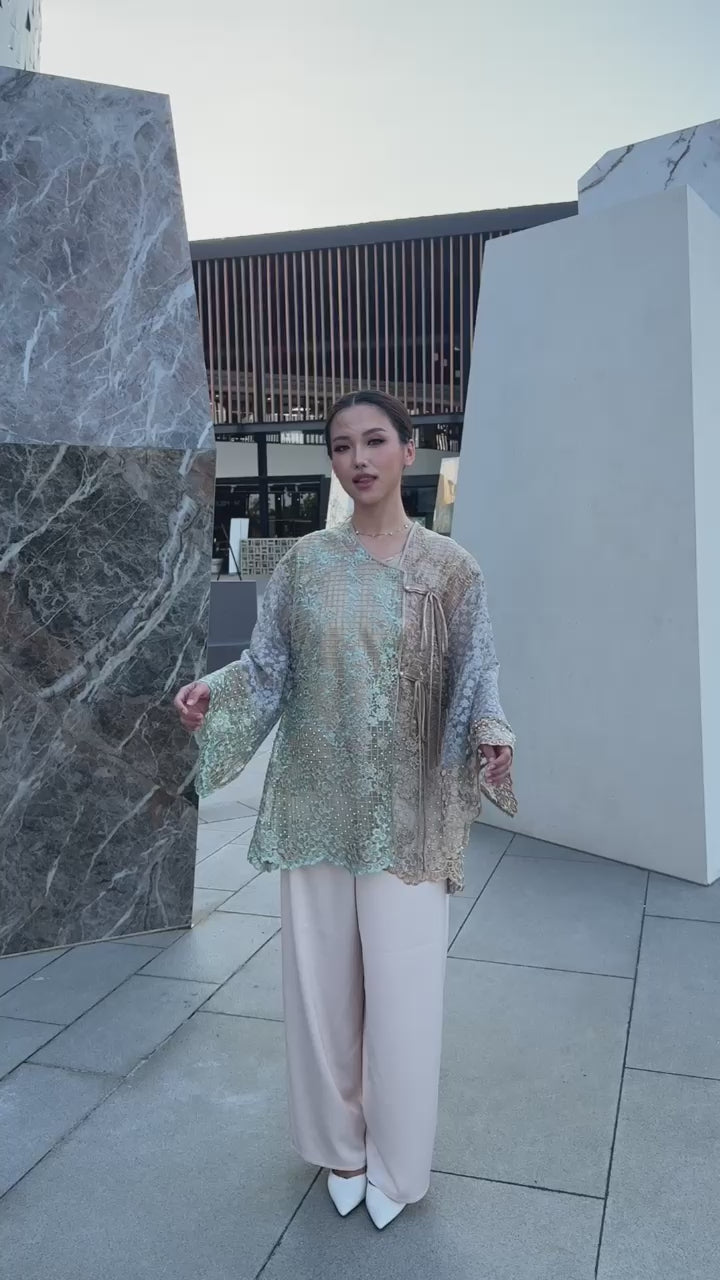 Bloom et Champs Kimono Kaftan Tiga Tali Pita Mutiara