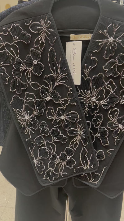 Bloom et Champs Outer Kaku Hitam Payet Kembang/ Flare Saten Pants in Navy
