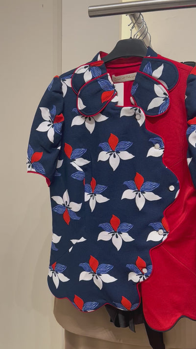 Bloom et Champs Sakura Scalloped Blouse/ Flare Saten Pants in Navy