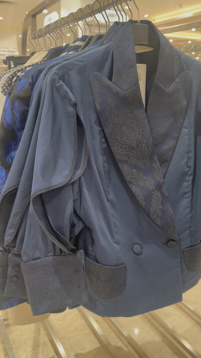 Bloom et Champs Scalloped Sleeves SS Navy Blouse