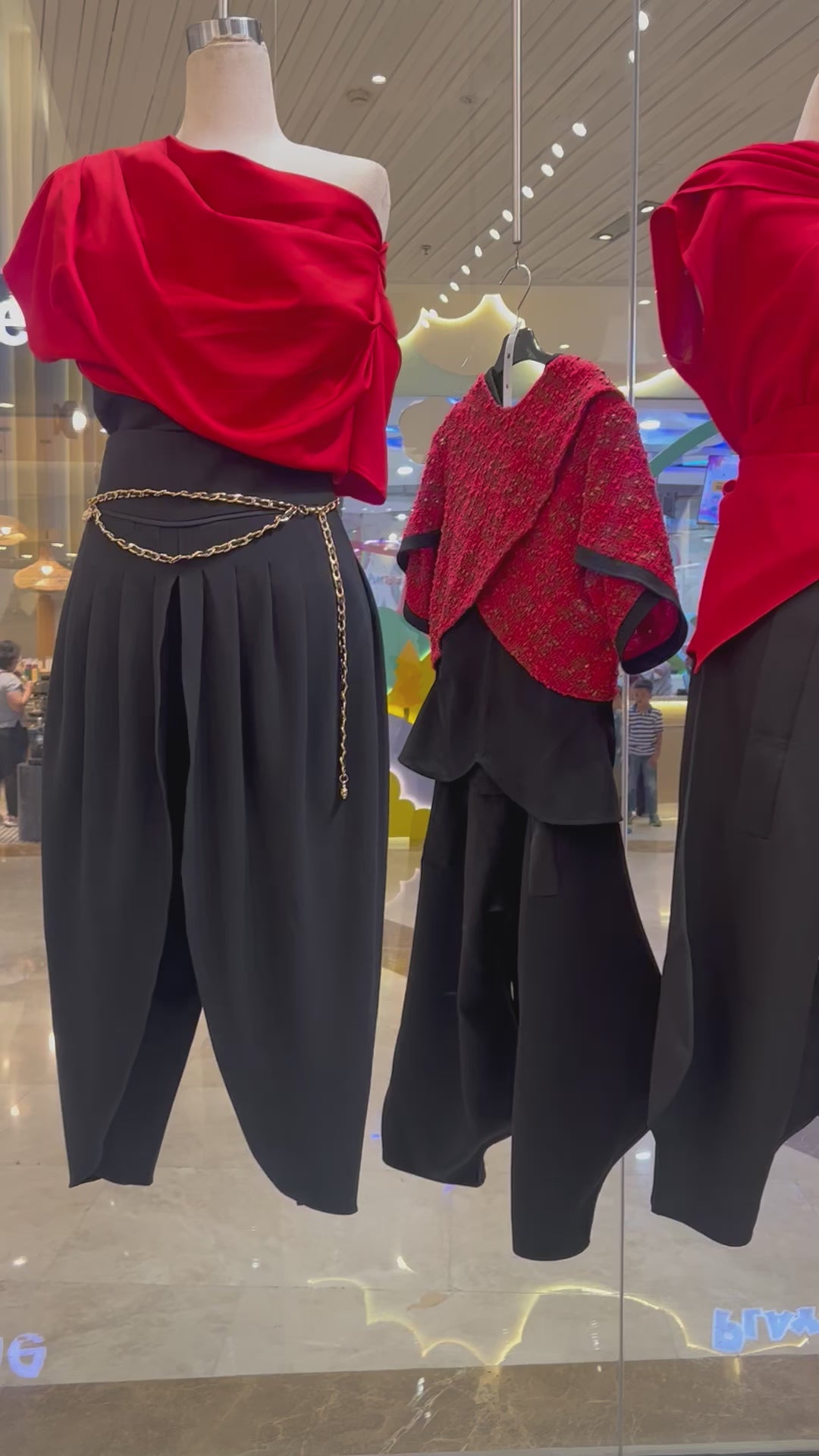 Bloom et Champs Top Kerah Ploi Merah/ Saten Obi Skirt
