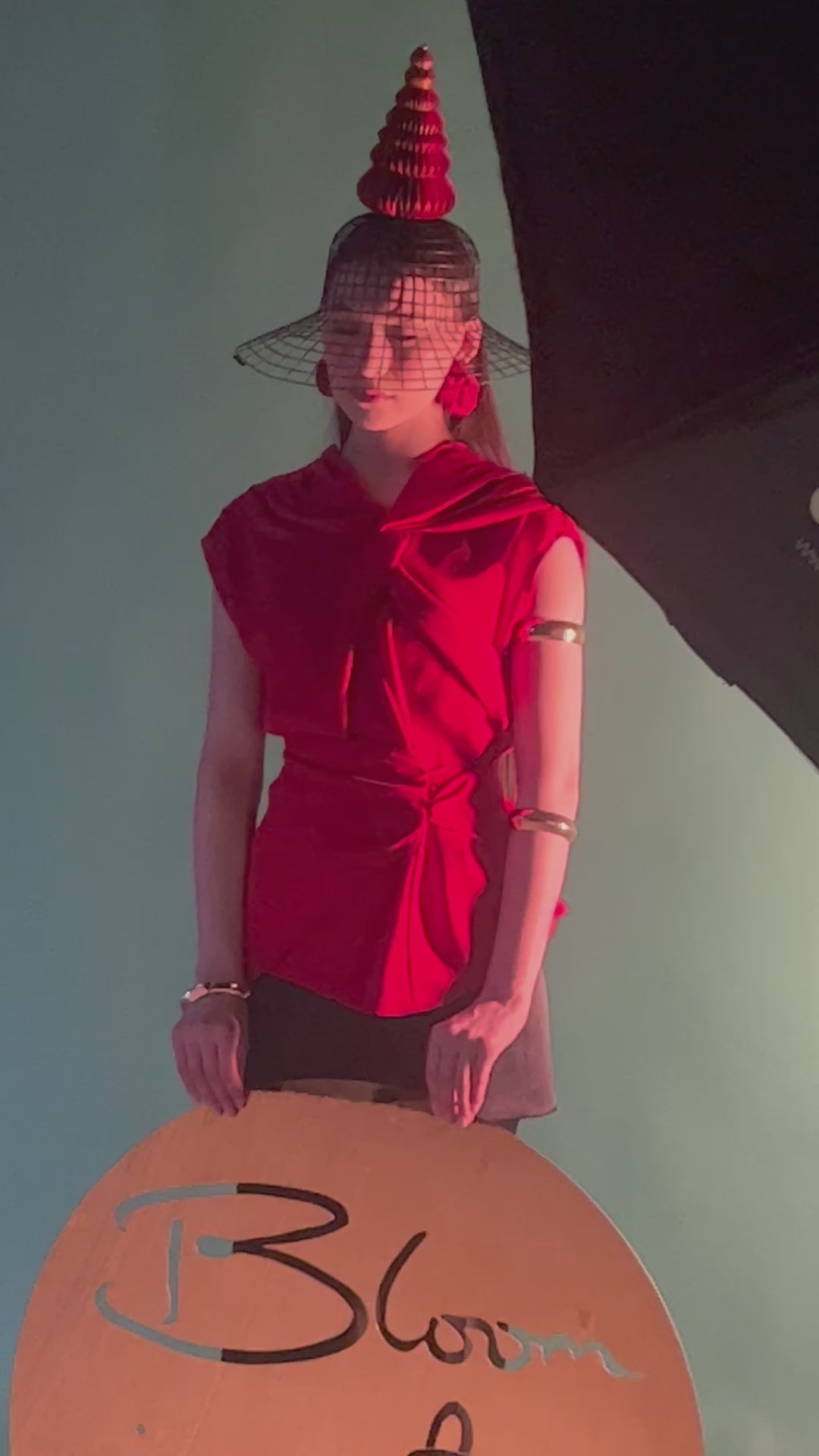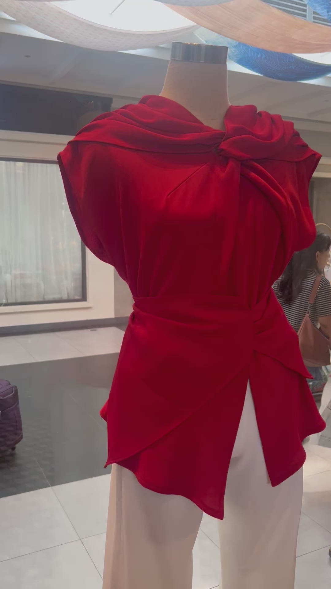 Bloom et Champs Top Knot Merah/Celana Saten Lebar Navy